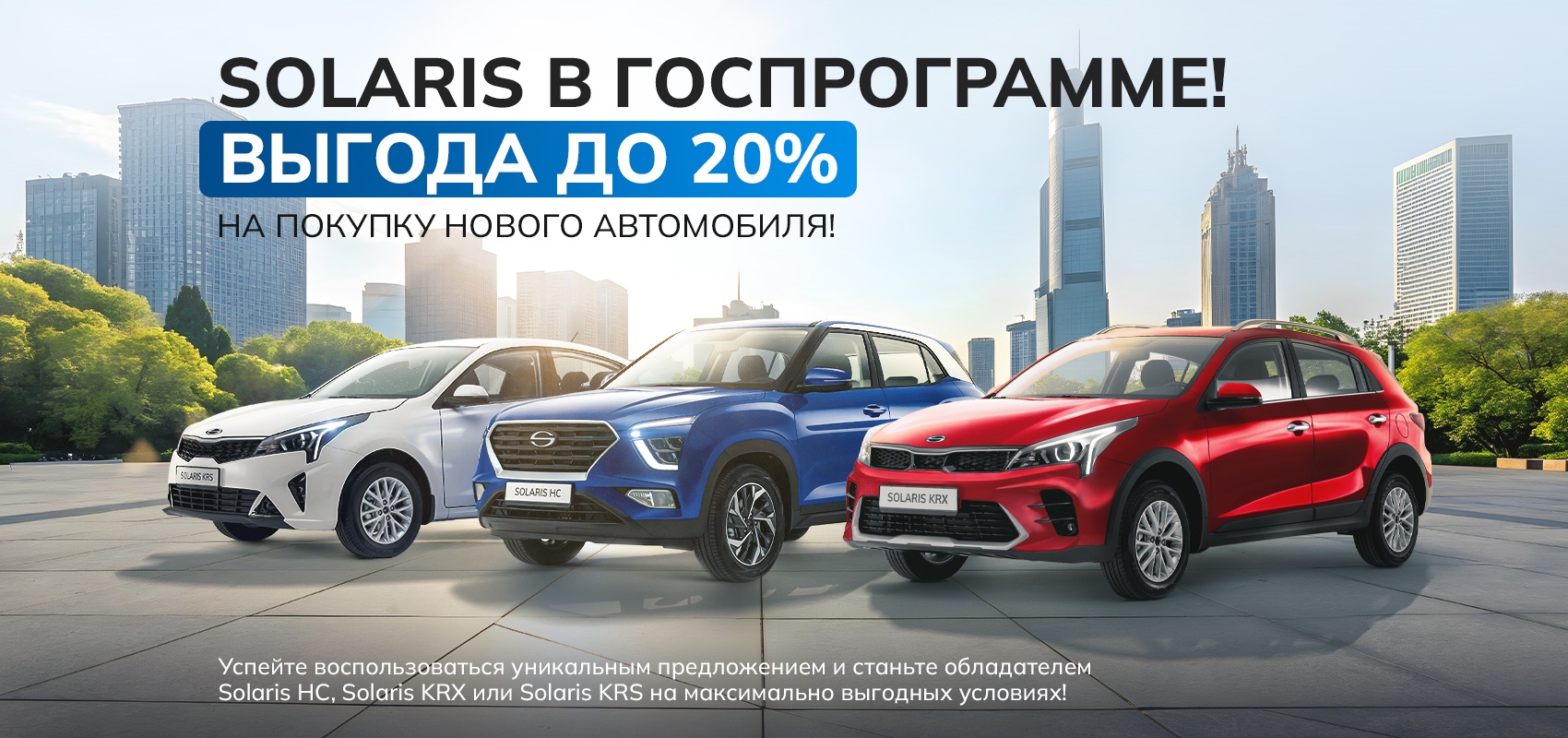 Мы с радостью сообщаем о включении популярных моделей Solaris HC, Solaris KRX и Solaris KRS в Государственную программу льготного автокредитования! Это ваш шанс получить значительную выгоду при покупке современного и надежного автомобиля Solaris.